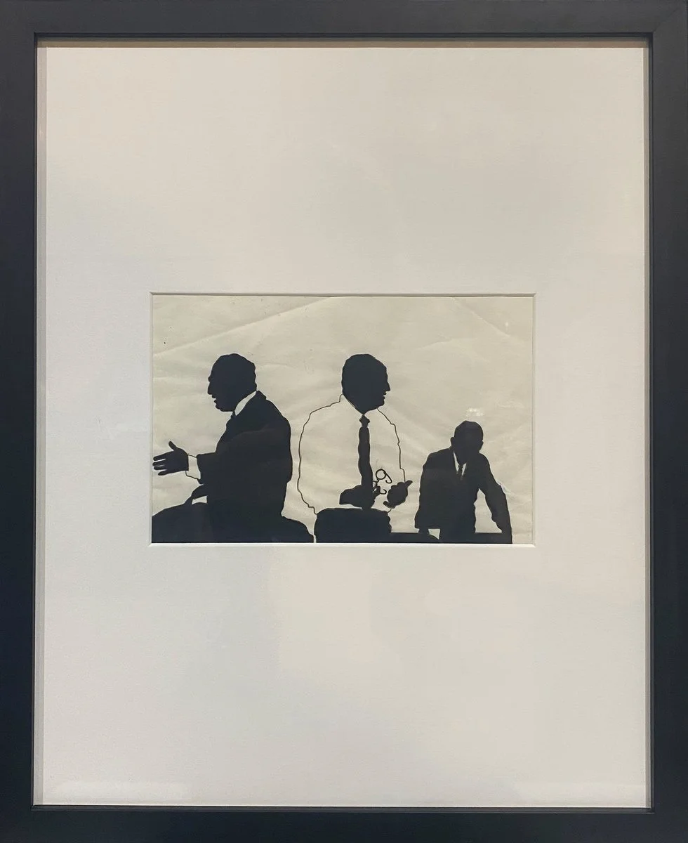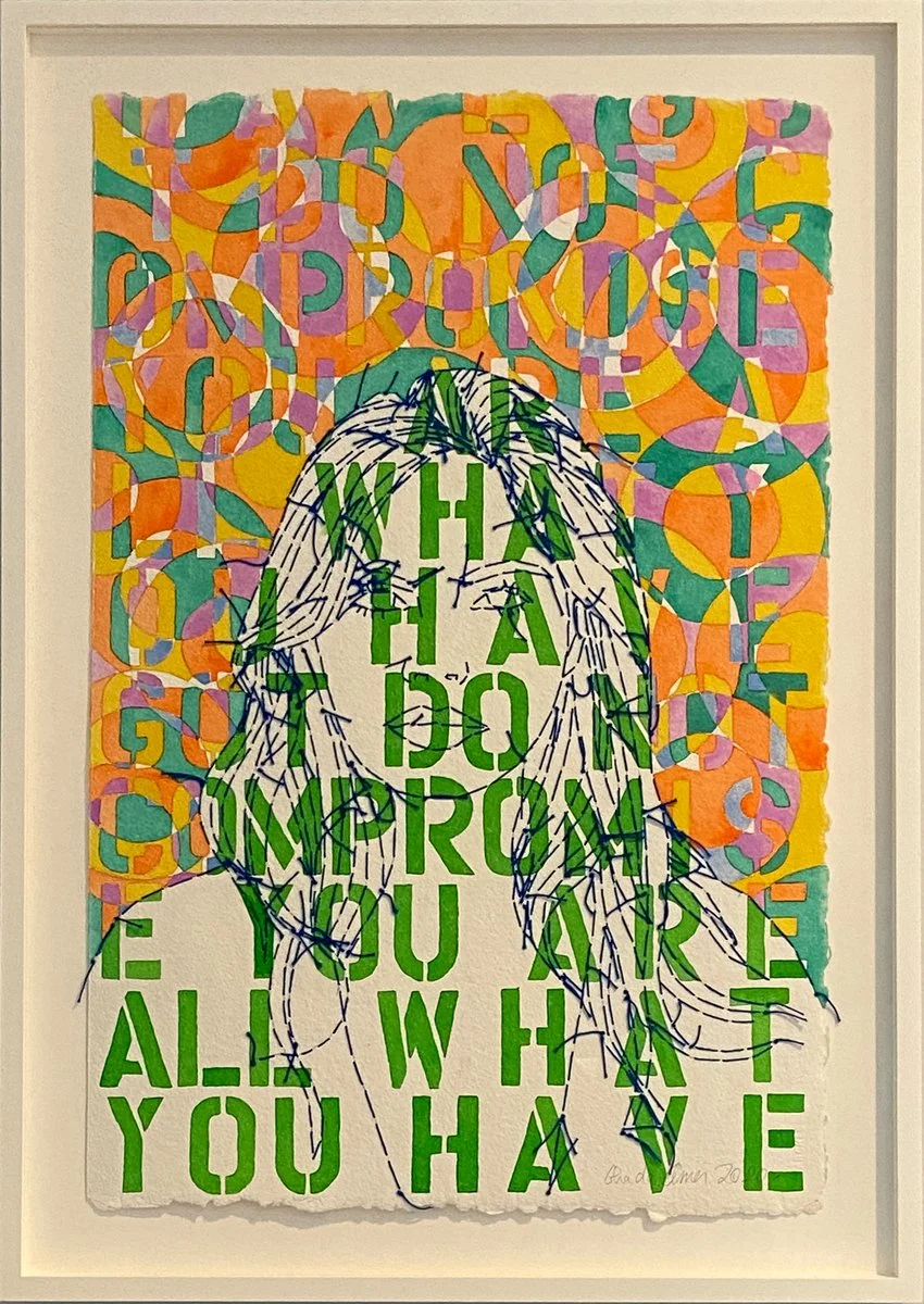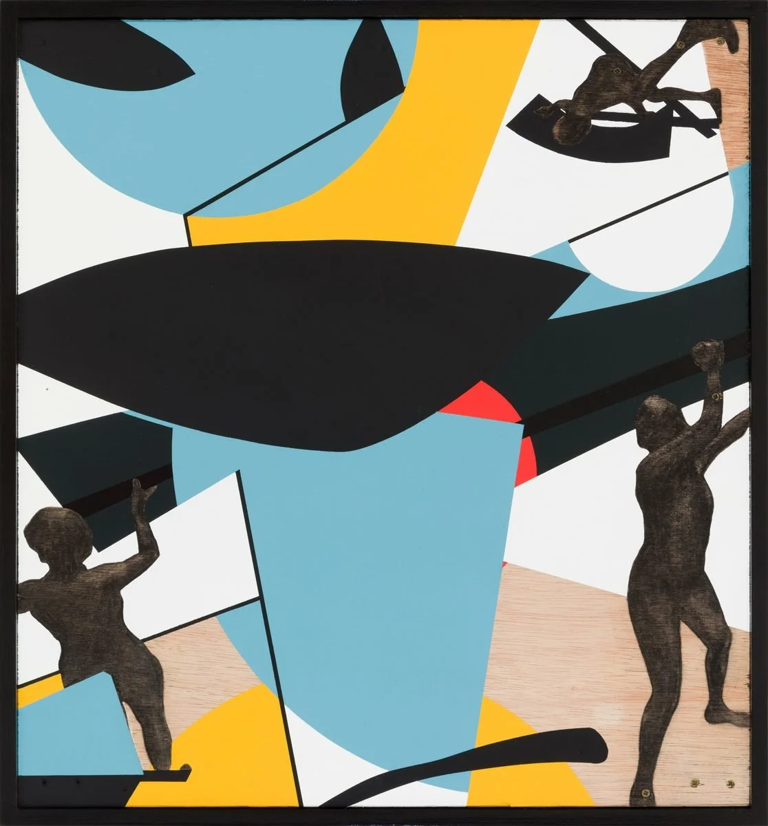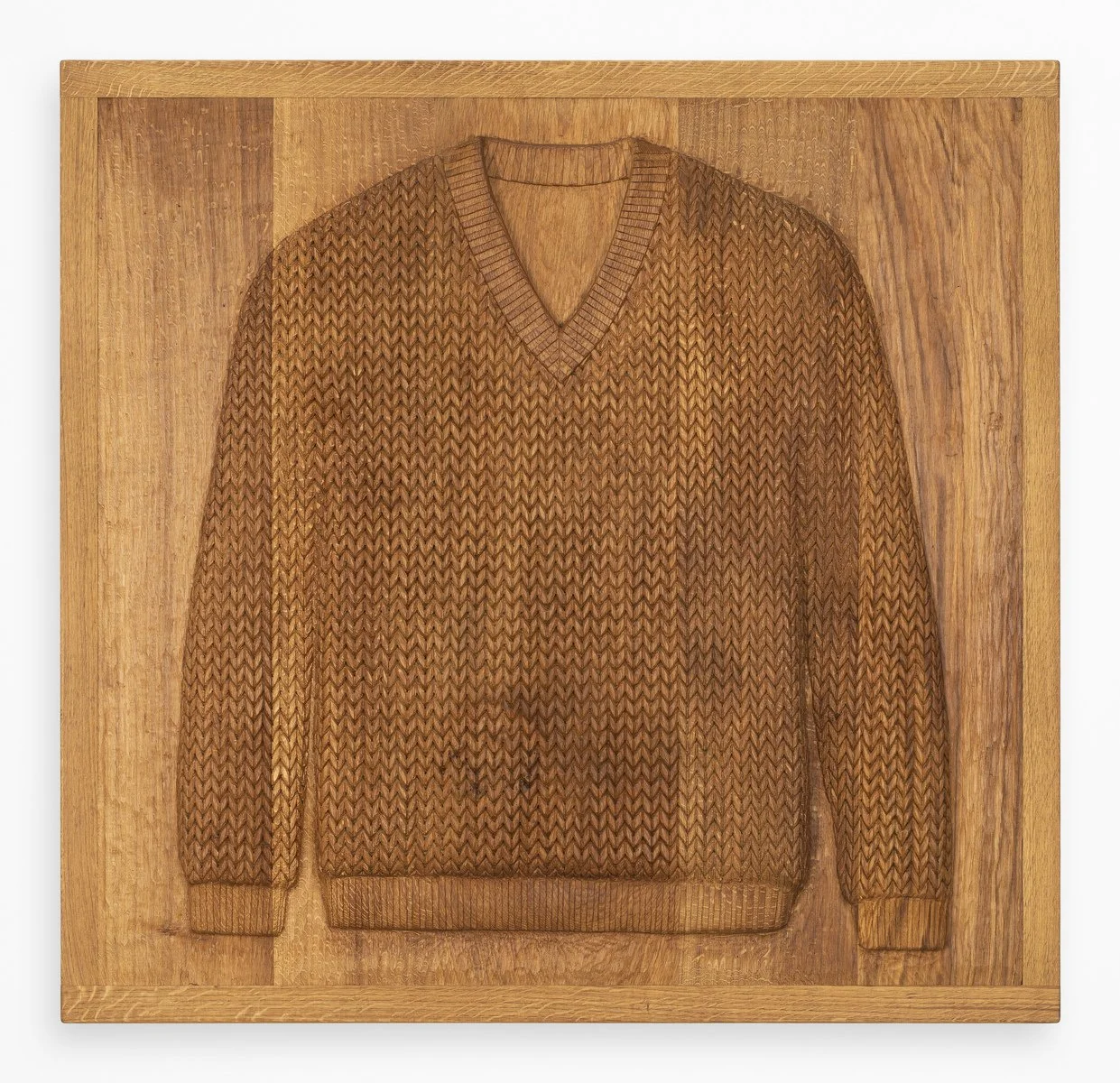 Carved wood, ink, colored pencil, graphite, crayon, and watercolor on paper, and a handmade penny on wood panel