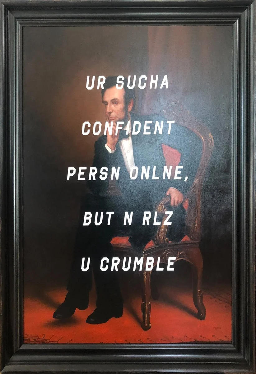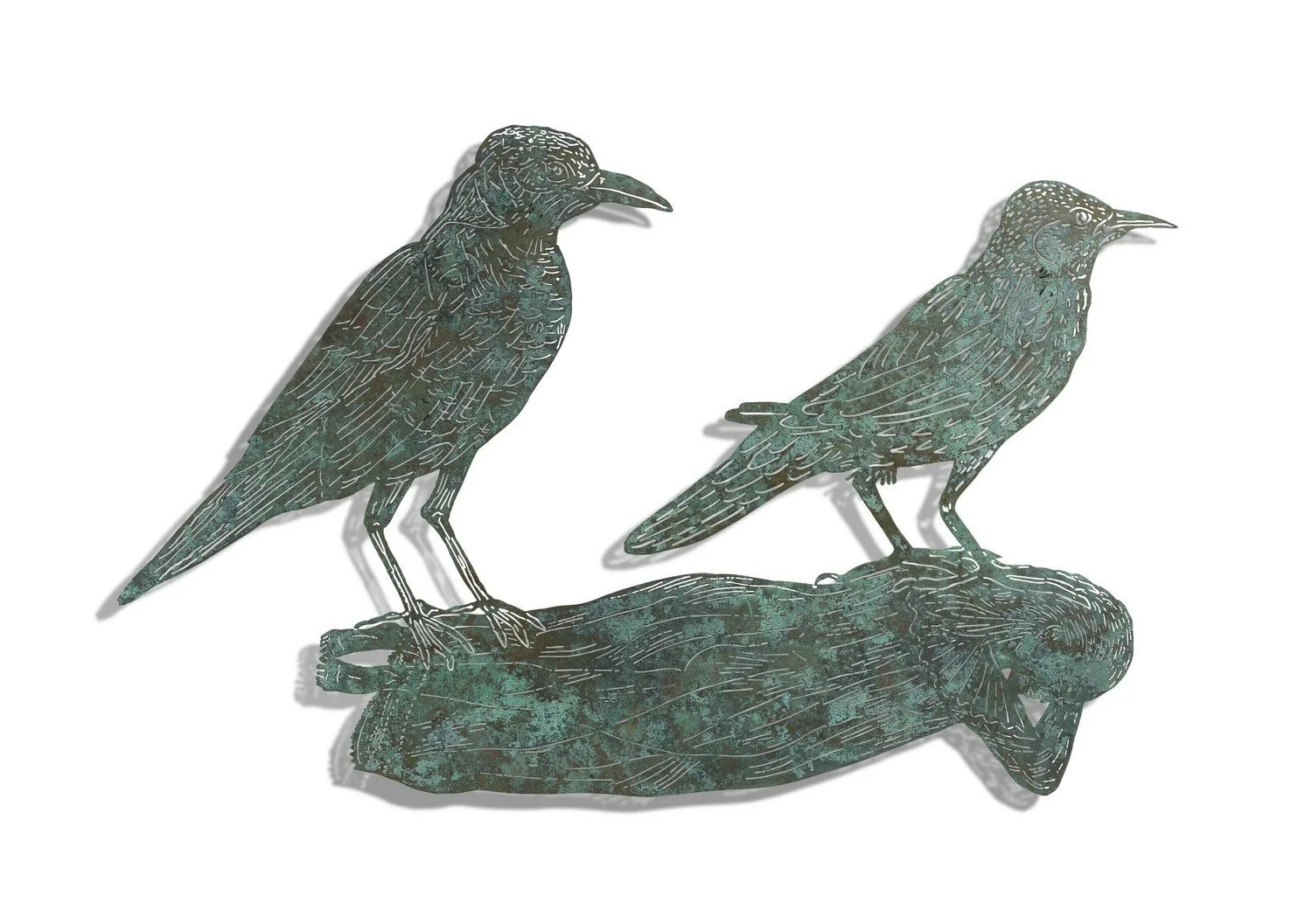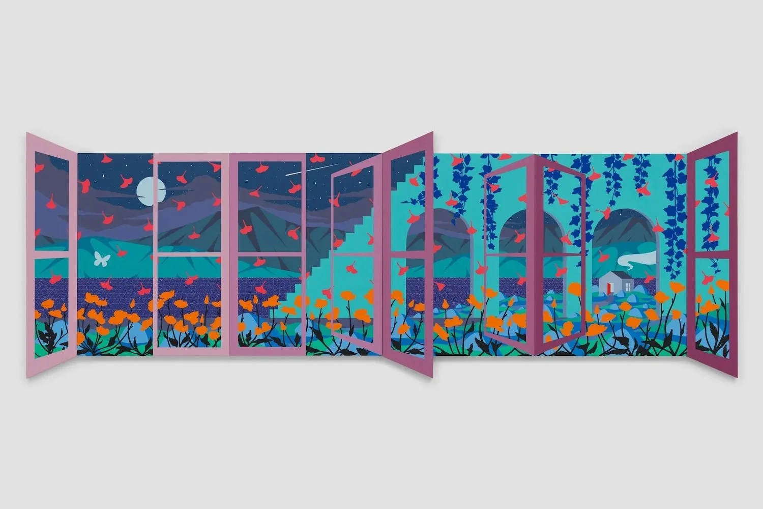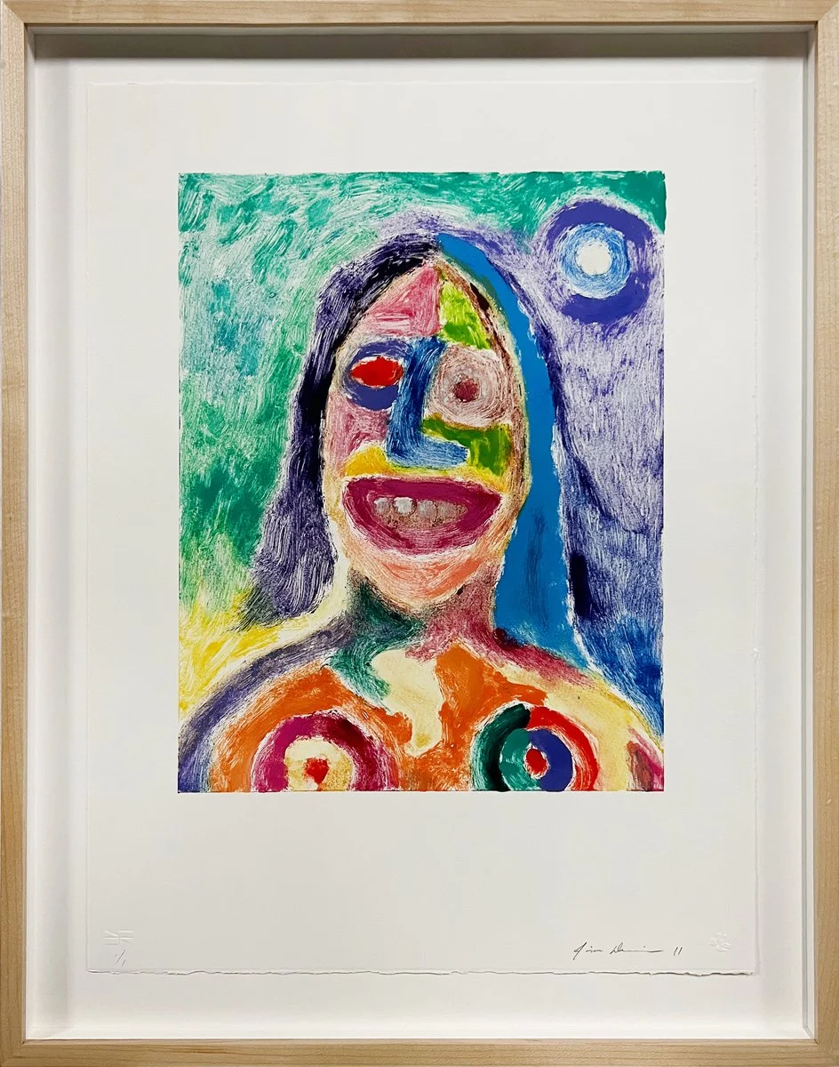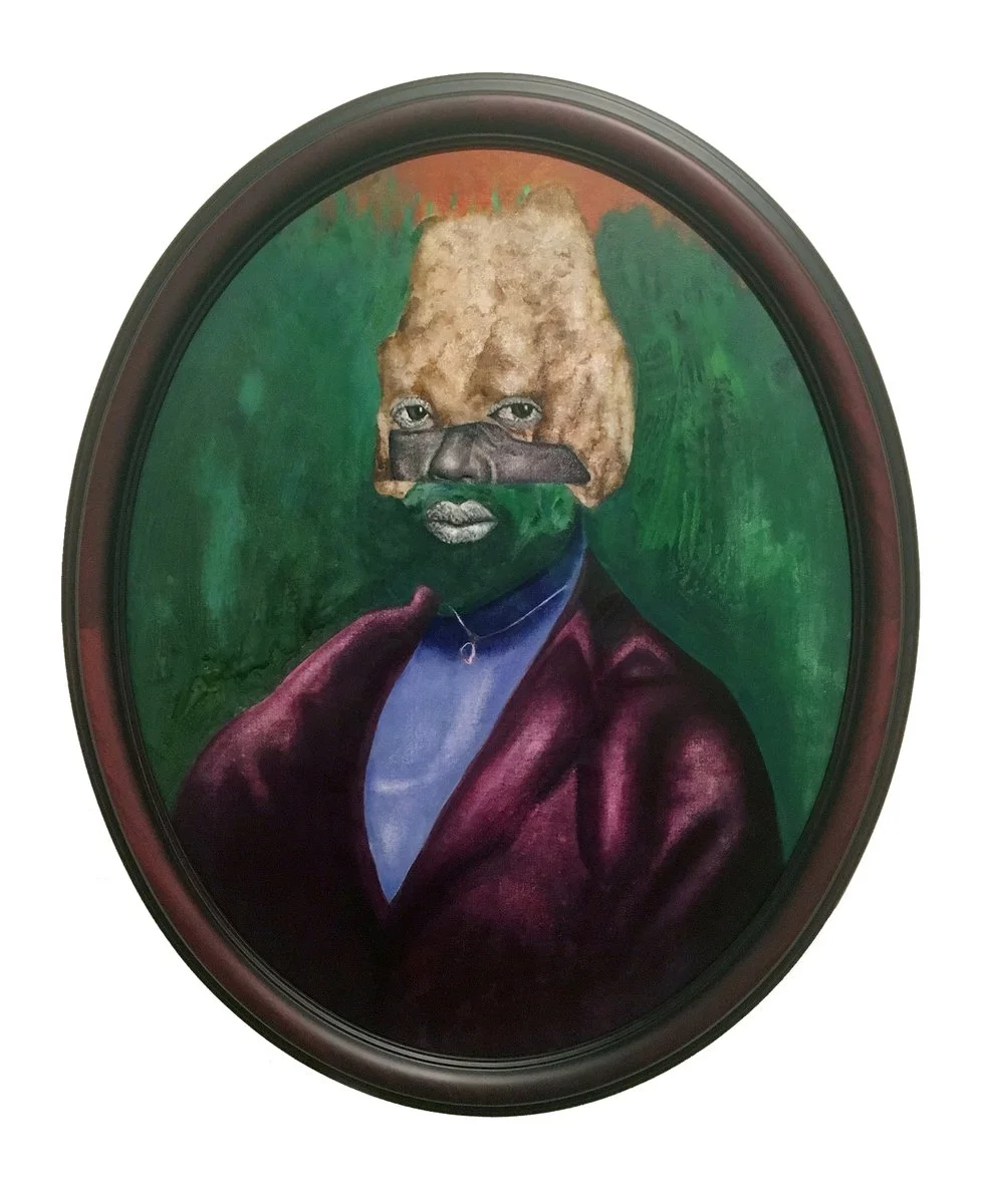 Carved wood, ink, colored pencil, graphite, crayon, and watercolor on paper, and a handmade penny on wood panel